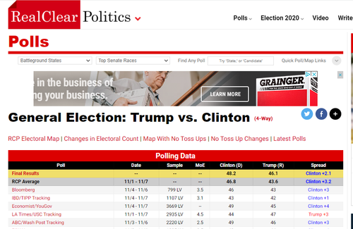 This is really not that hard. Individual polls vary widely by sample size, population (all adults/registered voters/likely voters) and how they determine likely voters (if using that population).