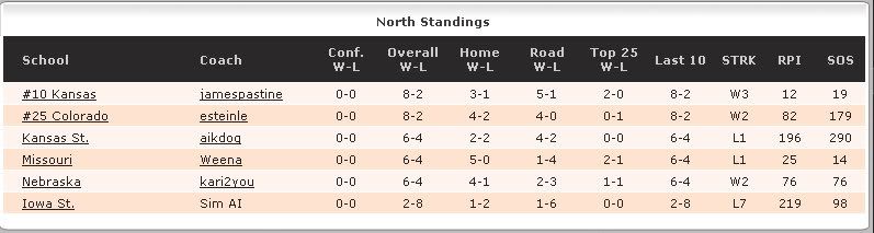 Here we are after our noncon. I scheduled pretty easy opps, so I was expecting a better record, but 5-5 is OK considering that I have a very young team and the press has had some changes made in the new engine.