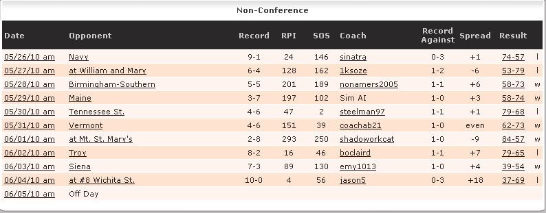 And here's the conference. We're fifth in conference RPI (ACC, Big Sky, PAC 10, A-10) and seventh in record (ACC, PAC 10, Big Sky, A-10, Mizzou Valley, Ivy.) That's not so strong.