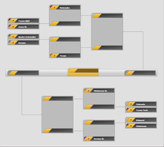 Actual result: TAMU over Nebraska (2OT,) Texas over Kansas, K State over Mizzou, OK State over Colorado. Now, we have a OK State-TAMU final; the two teams split the season series, but it was damn close (2-point win for us, 11 for them.) TAMU is the more talented team, but OK State has experience (all IQs at B+ or better) and depth (11-deep vs. TAMU's three walkons and one freshman starter.)