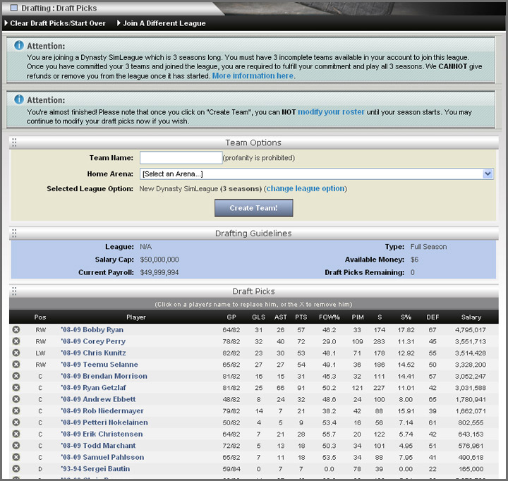 Build a team of stars from throughout NHL history. Gretzky and Hull on the same line? Defense of Bobby Orr and Denis Potvin with Bernie Parent in the net? You can do it all.