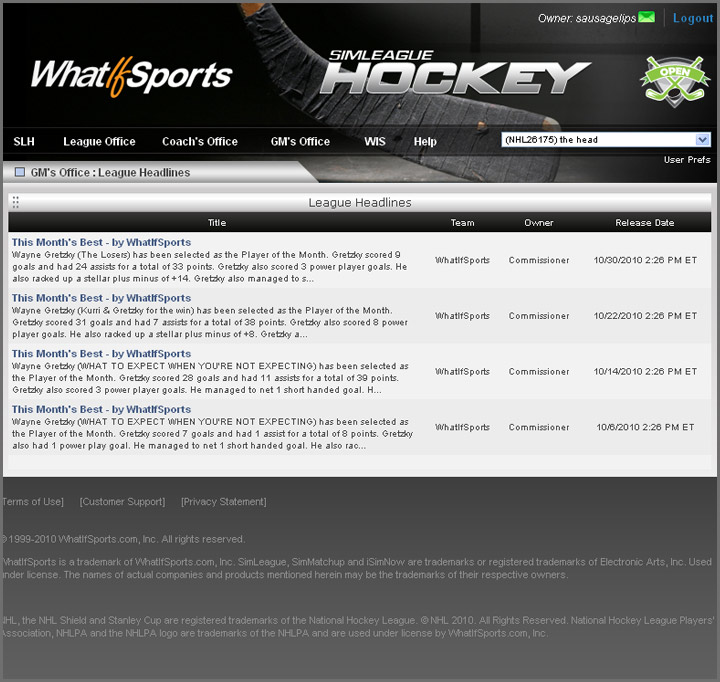 SimLeague Hockey™ is an online simulation hockey game that puts you in the dual role of GM and coach.