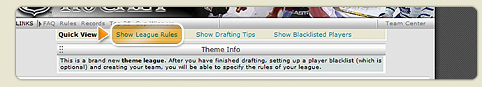 If you are the theme league creator, when drafting your team you have the option to create a blacklist -- in other words, a list of players banned from playing in your league. Just search for a player as if you were drafting, but instead click the ![]() |